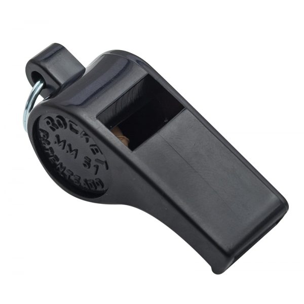 Apito rocket mm51. Apito profissional em plástico abs com bolinha que não trava em contato com saliva ou água. Requer esforço mínimo para apitar. Som agudo.