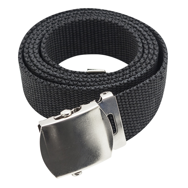 Cinto social confeccionado em fita de nylon com fivela rolete de metal niquelado.