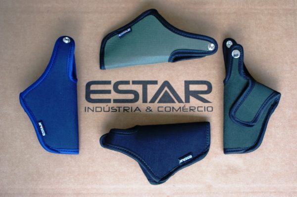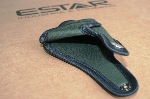Coldre saque rápido para revolver 38 confeccionado em cordura e botão de pressão.